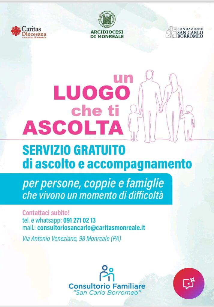 Un progetto voluto dall’Arcidiocesi di Monreale, dalla Caritas Diocesana e dalla Fondazione “San Carlo Borromeo”, in collaborazione con il Consultorio “Oasi Cana” di Monreale-Palermo.