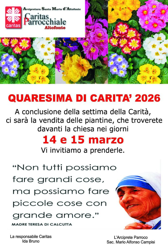 Attività - Eventi Avviso Caritas Quaresima di Carità 2026 – Settimana della Carità di Paolo Cannova|Pubblicato 9 Marzo 2026 Condividi: Condividi su Facebook (Si apre in una nuova finestra) Facebook Condividi su X (Si apre in una nuova finestra) X Condividi su WhatsApp (Si apre in una nuova finestra) WhatsApp Invia un link a un amico via e-mail (Si apre in una nuova finestra) E-mail Stampa (Si apre in una nuova finestra) Stampa