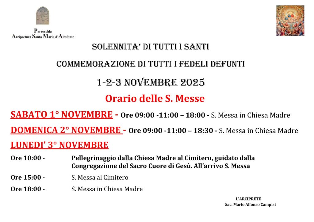 “SOLENNITA’ DI TUTTI I SANTI – COMMEMORAZIONE DI TUTTI I FEDELI DEFUNTI” 1-2-3 novembre 2025